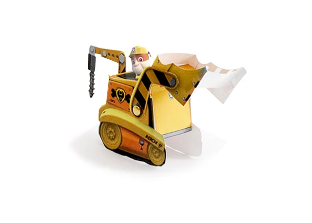 6 Printable paper engineered toy vehicles for the launch of the new television show PAW Patrol on Nick Jr. Each paper craft was a different challenge, some having moveable parts, like Skye's helicopter or Rubble's bulldozer, while others had miniature items to build, such as the cones on the back of Chase's police vehicle.